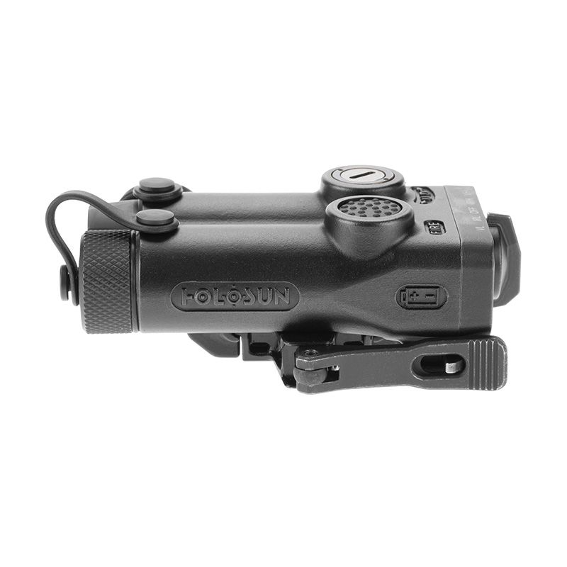 The Holosun Laser & Weaponlights is a class IIIa visible green laser aiming device with a coaxial mounted class 2 IR (infrared) laser for use with night vision devices. The LE221-GR features a grade 5 titanium housing with a quick release Picatinny rail mount. The LE221-GR is powered by a single CR123 battery which can provide up to 5000 hours of battery life.